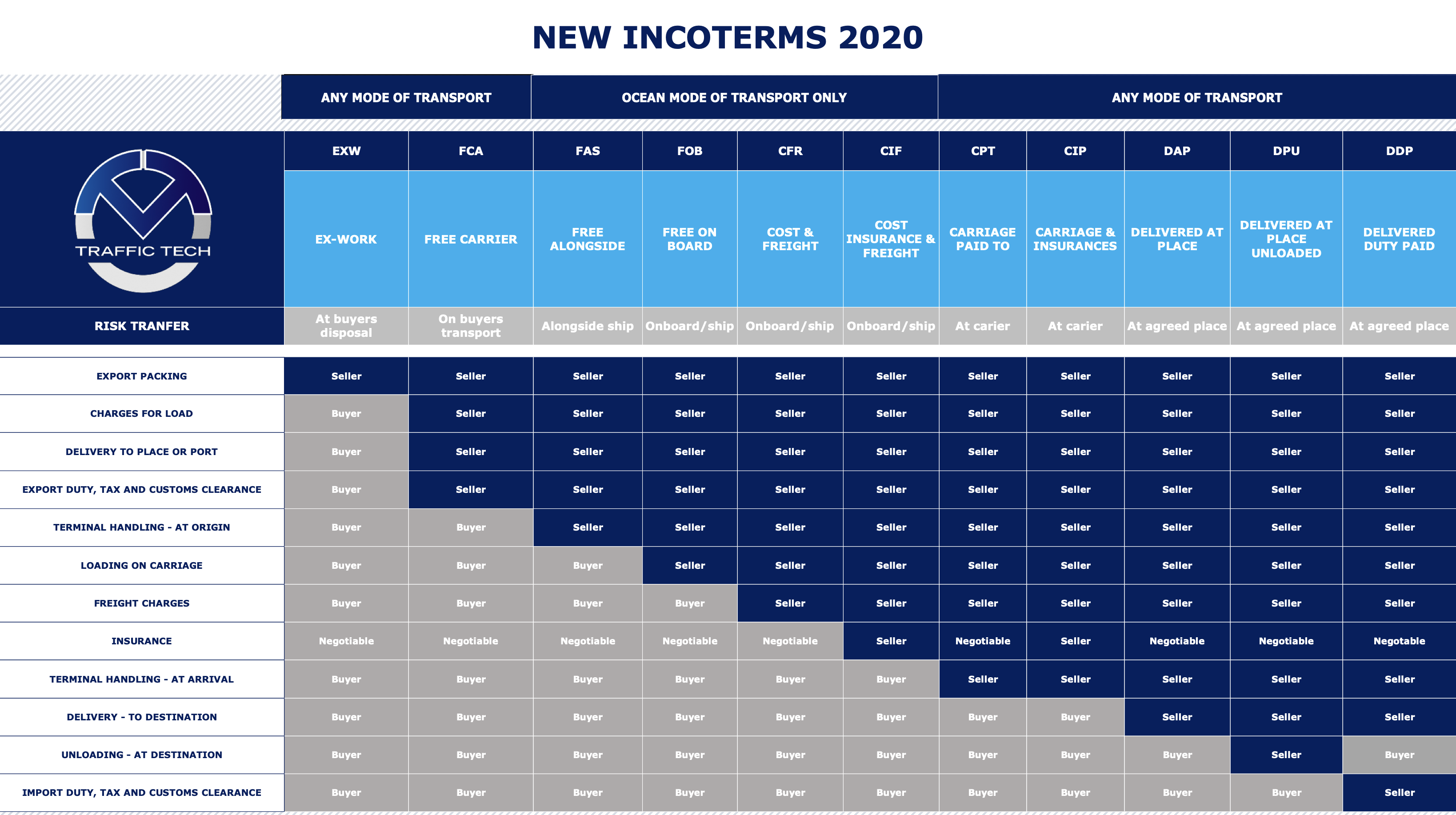- DDP (Delivered Duty Paid): The seller bears all costs and risks, including import duties, until delivery at the buyer's location.